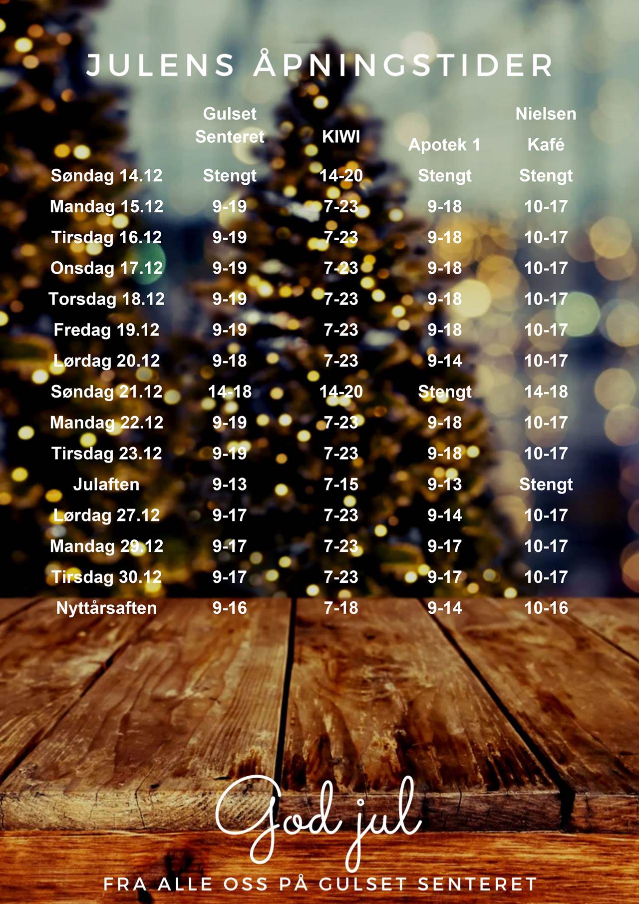 Gulset Senteret har åpent fra 9-19 (18). 🌸